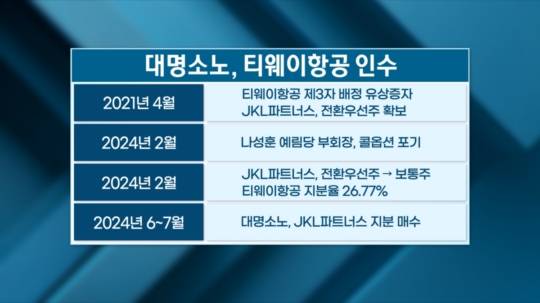 대명소노는 지난해 사모펀드(PEF) JKL파트너스의 티웨이항공 지분을 사들여 2대 주주에 올랐는데요.