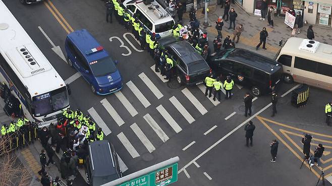 윤 대통령이 탑승한 호송차량은 오늘 오후 4시 40분쯤 서울 종로구 헌법재판소를 빠져나왔습니다.