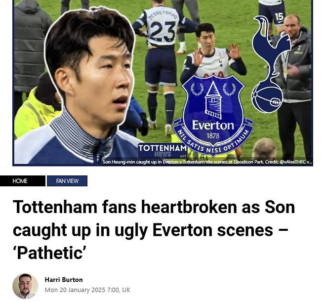 토트넘의 소식을 전하는 '토트넘 홋스퍼 뉴스'는 20일 "토트넘 팬들은 손흥민이 이런 추악한 상황에 휘말린 것이 가슴이 아프다"라는 주장의 기와 함께 손흥민이 비판을 받는 모습에 대한 축구팬들의 반응을 알렸다.