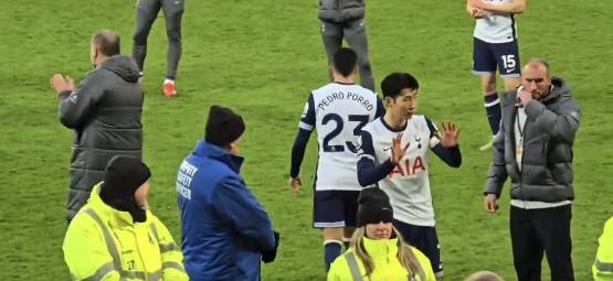 경기 종료 후 손흥민은 에버턴 원정까지 응원하러 와준 토트넘팬들의 좌석으로 향했다. 그러나 팬들은 손흥민을 향해 큰 목소리로 비판했다.