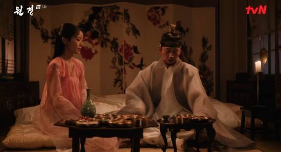 21일 방송된 tvN 월화드라마 '원경' 6회에서는 채령(이이담 분)이 이방원(이현욱)에게 왕자를 임신한 사실을 알린 모습이 그려졌다.