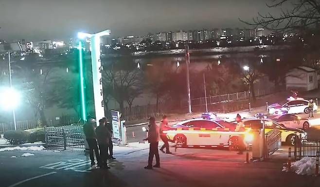 선거연수원 정문 CCTV 영상에서는 6대의 경찰차와 여러 명의 경찰이 서성이고 있으며, 정문에 바리케이트를 설치해 입구를 통제하는 모습이 담겼다. 또 다른 정문 CCTV 영상에서는 경찰 버스도 보인다.