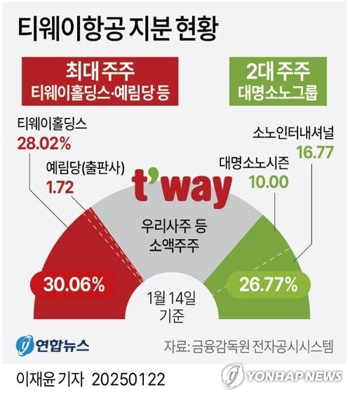 [그래픽] 티웨이항공 지분 현황