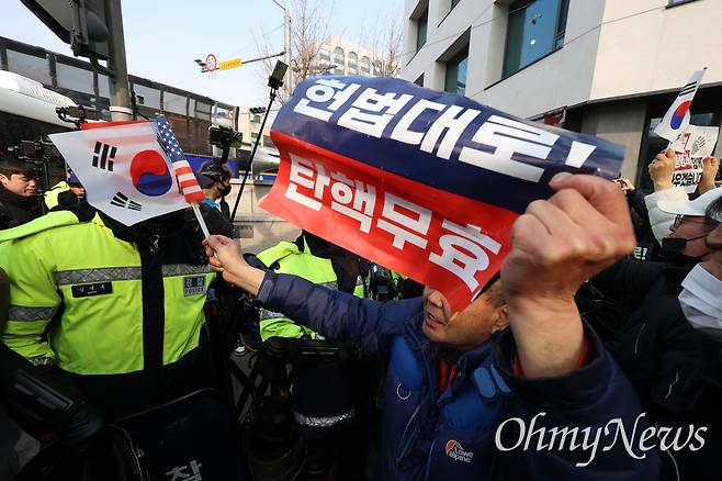 | ▲ 21일 서울 종로구 헌법재판소 앞에 모인 극우 시위대. |
