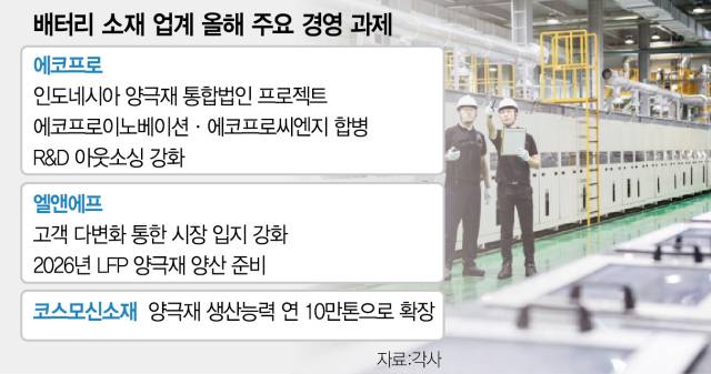 소재 다변화는 다른 경쟁사의 과제이기도 하다. 엘앤에프(066970)는 올해 경영 과제 중 하나로 LFP 양극재 양산 준비를 내걸었다. LFP 양극재 파일럿 라인 운영 경험을 바탕으로 2026년 본격 양산에 나설 방침이다. 최수안 대표는 “2025년은 마지막 위기를 돌파하고 우리 회사가 위기를 넘어 성장으로 나아가는 전환점이 될 것”이라며 “올 한해 준비를 마쳐 2026년부터 본격적인 성장을 이뤄내겠다"고 강조했다. 하이니켈 양극재를 양산해온 엘앤에프는 LFP 등 제품 다변화를 통해 고객사를 확대하며 시장 입지를 강화하겠다는 구상이다.