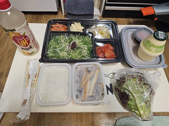 | ▲ 제육볶음 지하층 이웃 여성 세입자분이 동파된 보일러에서 물이 세는 것을 해결해준 것에 대한 감사로 제육볶음과 음료를 사주었다. |