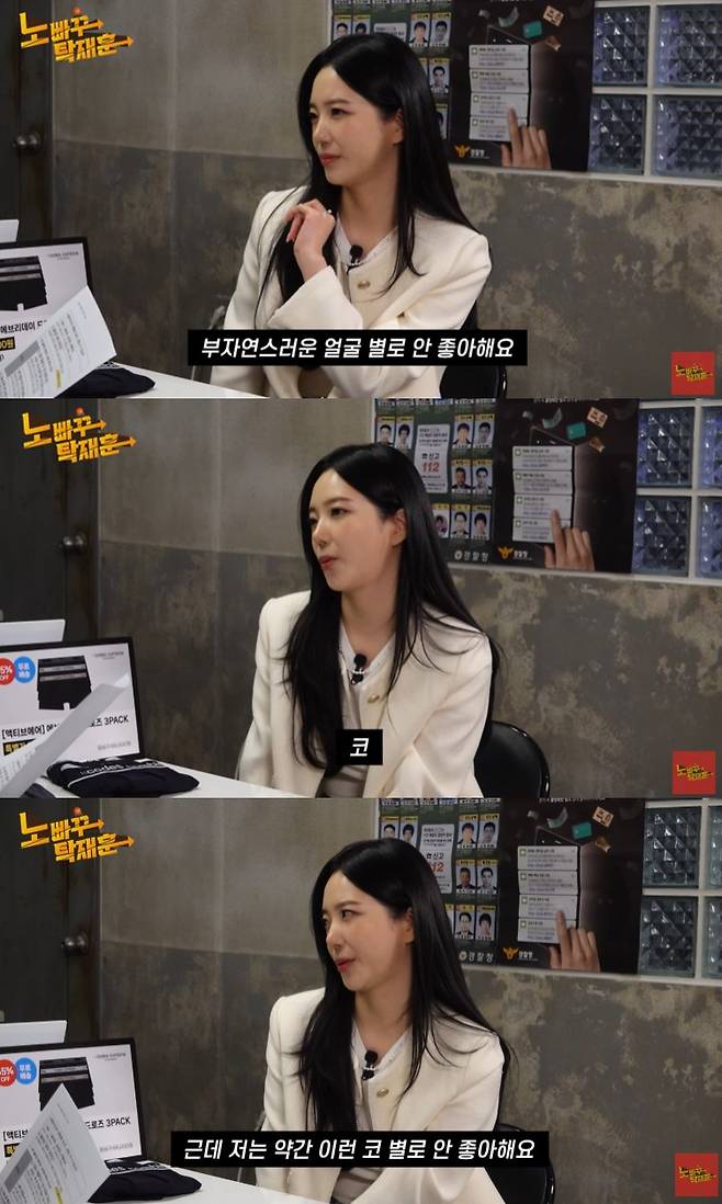 이를 들은 탁재훈이 "코 자연스러운데"라고 말하자 윤하정은 "자연스러운" 코를 좋아한다며 부자연스러운 얼굴을 안 좋아한다고 덧붙였다.