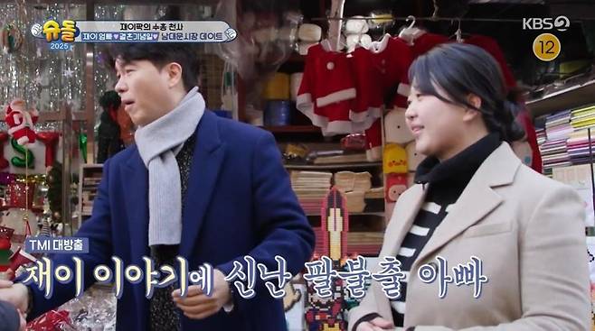 박수홍은 "결혼기념일 겸 재이 선물도 살겸 남대문 시장을 찾았다"라고 말했다. 안영미는 "결혼기념일과 남대문 시장이 무슨 연관이 있냐"라고 물었고, 최지우는 "와이프가 가자고 했다면 인정"이라고 말했다. 최지우에 따르면 남대문 시장은 아동복의 메카라고.