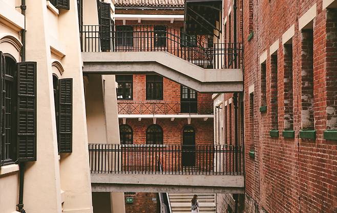그렇게 몇 분을 올라가면 주황색 벽돌이 매력적인 타이쿤(Tai Kwun)에 닿는다. 옛 중앙경찰청사, 중앙관공서, 빅토리아 감옥 등이 복합 문화예술 공간으로 다시 태어났다. 각종 전시는 물론 카페와 레스토랑 등을 갖추고 있으니 여행자 친화적인 시설이다. 현대적인 고층 빌딩과 고풍스러운 타이쿤의 대비가 매력적이고, 중정을 바라보고 마시는 칵테일도 좋은 휴식이 된다.