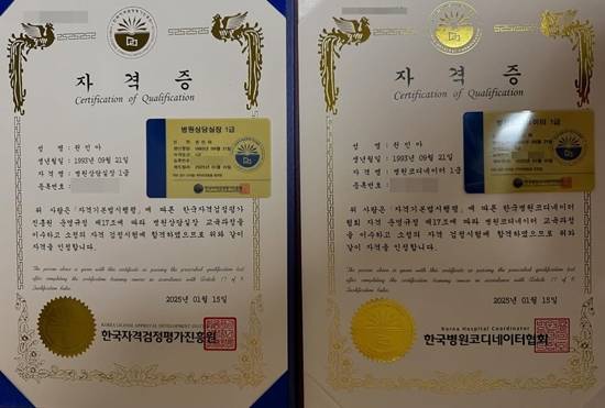 이어 "여러모로 고민도 털어놔 주시고 문의도 많이 주셔서 감사합니다"라며 자격증 사진을 함께 공유했다.