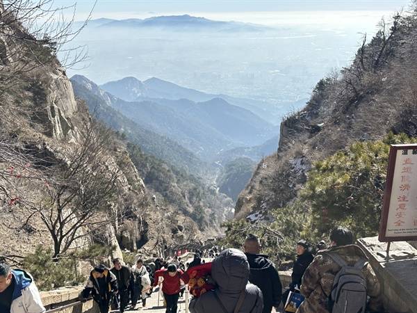 | ▲ 남천문 아래로 수천 개의 계단과 태안시가 보인다. |
