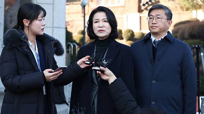 ▲ 이진숙 방송통신위원장이 23일 오전 서울 종로구 헌법재판소에서 열린 방통위원장 탄핵심판 청구 사건 선고를 마친 뒤 입장 발표를 하고 있다.