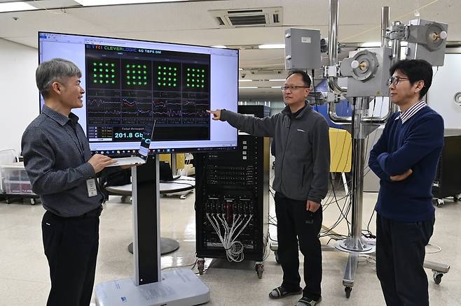 한국전자통신연구원(ETRI)은 6G 이동통신 개념증명(PoC) 시스템을 개발해 작년 말 세계 최초로 200Gbps급 6G 무선링크 시연에 성공했다고 23일 발표했다. 현재 국내에서 사용되는 5세대(5G) 이동통신의 속도(다운로드 기준)가 1Gbps 초반인 점을 감안하면 200배 가까운 속도다. 과학기술정보통신부의 ‘6G 핵심원천 기술개발’ 사업의 일환으로 주관기관인 ETRI를 비롯해 SK텔레콤, KT, LG유플러스 등 통신 3사와 삼성전자, 클레버로직, 에스넷아이씨티, 코모텍이 공동연구기관으로 참여 중이다.