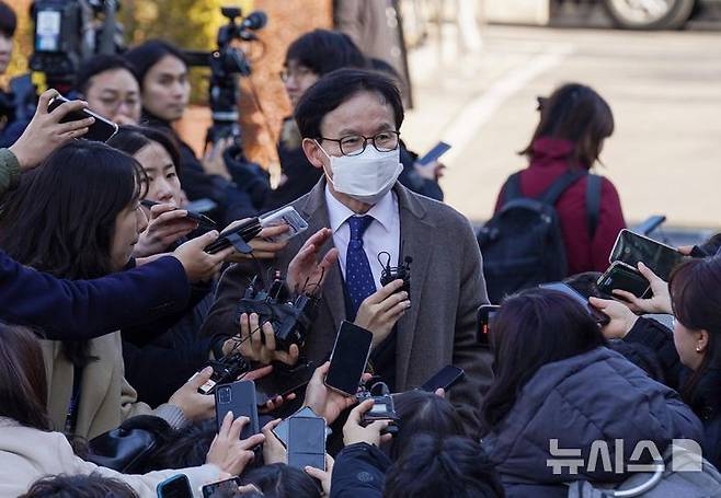 [서울=뉴시스] 사진공동취재단 = 윤석열 대통령 측 변호인단 배진한 변호사가 23일 오후 서울 종로구 헌법재판소에서 열린 윤석열 대통령 탄핵심판 4차 변론기일에 참석하며 취재진의 질문에 답하고 있다. 2025.01.23. photo@newsis.com