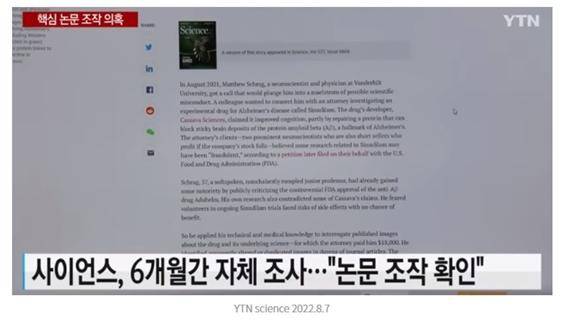그러던 중 2021년 8월 밴더빌트대 슈레그(Schrag) 교수가 2006년 레스네 교수 논문은 조작되었다고 폭로하면서 주류 이론이던 '아밀로이드 가설'은 큰 타격을 받았다 [14]. 지금까지 제대로 된 치매 치료제가 나오지 못한 이유는 잘못된 가설 때문이라는 비판이 줄을 이었다 [15, 16].