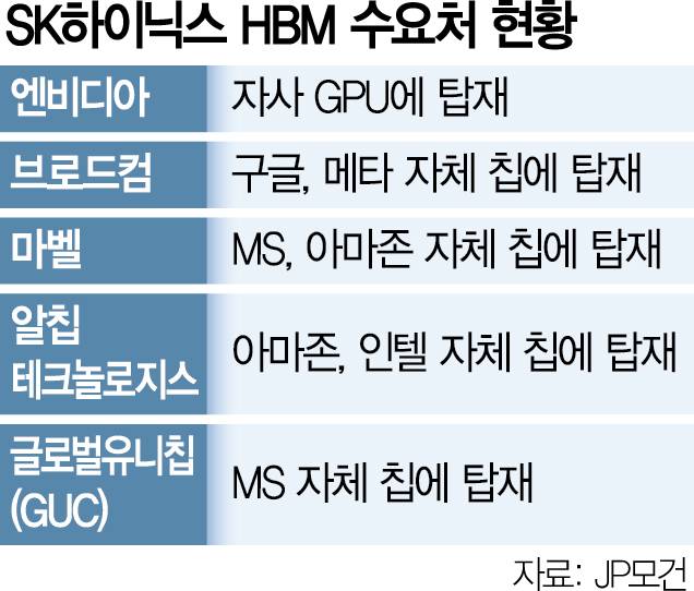 구글·메타 등과 자체 칩 설계를 놓고 파트너십을 맺은 브로드컴이나 아마존, 마이크로소프트(MS)의 자체 칩을 개발하고 있는 마벨 등 빅테크 모두 SK하이닉스의 선단 HBM을 적용할 계획이다. SK하이닉스 관계자는 “특히 올해는 맞춤형반도체(ASIC) 기반의 HBM 고객 수요가 의미 있게 증가함에 따라 고객 기반이 확대될 것”이라고 강조했다.