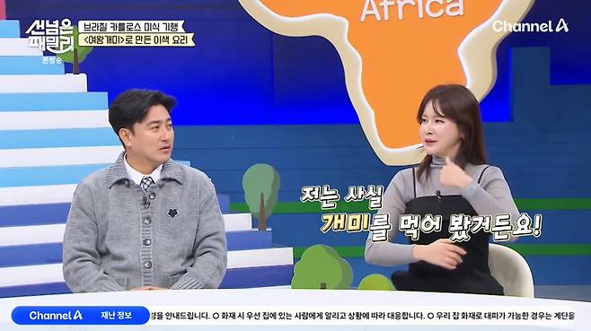 23일 저녁 채널A '남의 나라 살아요 - 선 넘은 패밀리'에서는 브라질 패밀리 카를로스 구리토-구혜원 부부가 현지 이색 요리 식당을 찾아 여왕개미 피자를 맛보는 장면이 전파를 탔다.