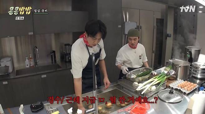 23일 방송된 tvN '콩 심은 데 콩 나고 밥 먹으면 밥심 난다'(이하 '콩콩밥밥')에서는 이광수와 도경수의 구내식당 2일차 아침이 그려졌다.