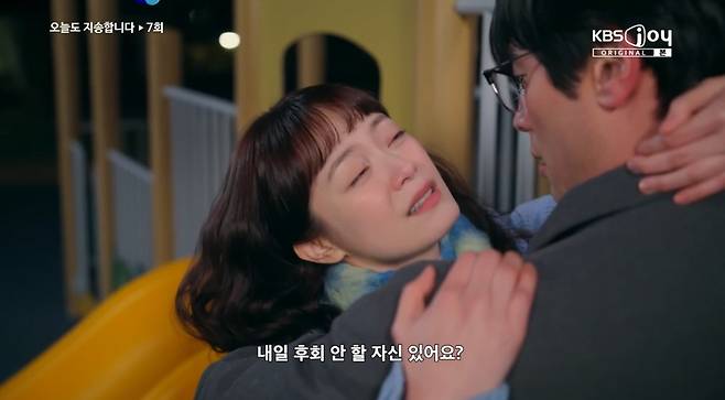 23일 밤 KBS JOY 목요 드라마 '오늘도 지송합니다'에서는 차현우(최다니엘 분)의 사무실에 합류한 지송이(전소민 분)가 에루샤 맘 사건 이후 차현우와 함께 위로주를 마시는 장면이 연출됐다.