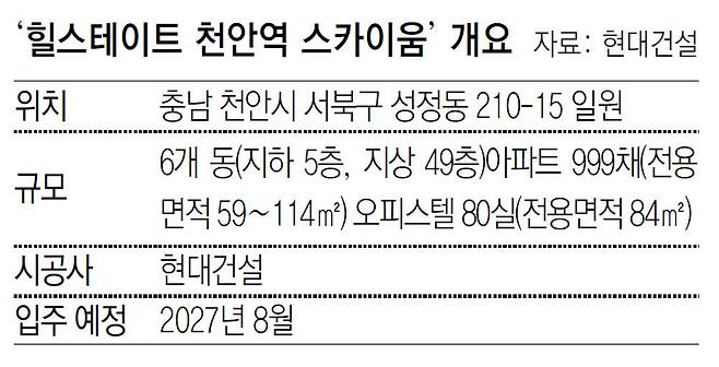 현대건설이 충남 천안시에서 초고층 주상복합 '힐스테이트 천안역 스카이움'을 분양 중이라고 23일 밝혔다.