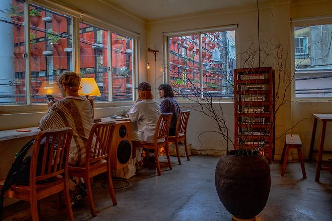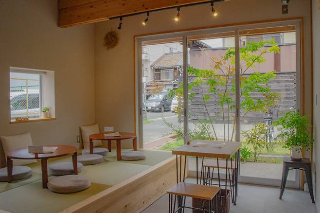 바깥에는 간판도 없어서 '여기가 맞나' 싶다면 아마 잘 찾았을 가능성이 큰 곳이다. 갤러리인지 카페인지 헷갈린다면 그것도 맞다. 일본에 있는 3개의 지점 중 신마치점은 Coherent Gallery라는 갤러리도 겸하고 있다. 차와 모찌(もち)를 즐기면서 현대 미술 작품을 감상할 수 있는 셈이다.