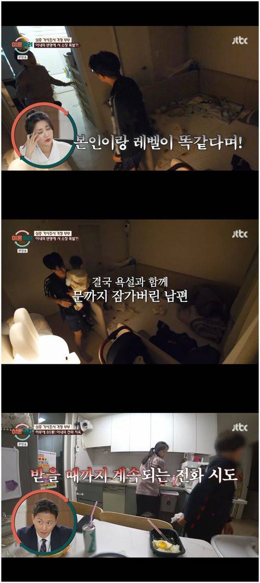 무엇보다 문제는 남편의 폭언과 폭력적인 행동이었다. 황진주는 “최근에 싸운 건, 남편이 컵라면을 집어 던졌다. 화가 나서 눈앞에 있는 물건을 집어 던진 것 같은데, 카메라가 돌기 시작하고 갑자기 그런 행동을 안 하더라”라머 억울함을 호소했다.