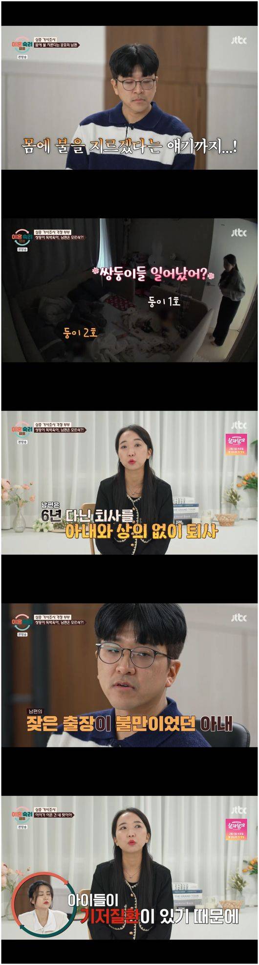 현재 16개월 된 쌍둥이를 돌보는 황진주. 황진주는 남편의 독단적이면서도 회피형 행동을 괴로워했다.