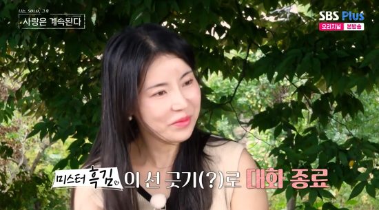 이날 10기 영숙과 산책을 한 미스터 흑김은 "(마음이 가는) 후보 두 명 중에 내가 있냐"고 물었고, 10기 영숙은 "그걸 직접적으로 얘기해야 하냐"며 황당해 했다.