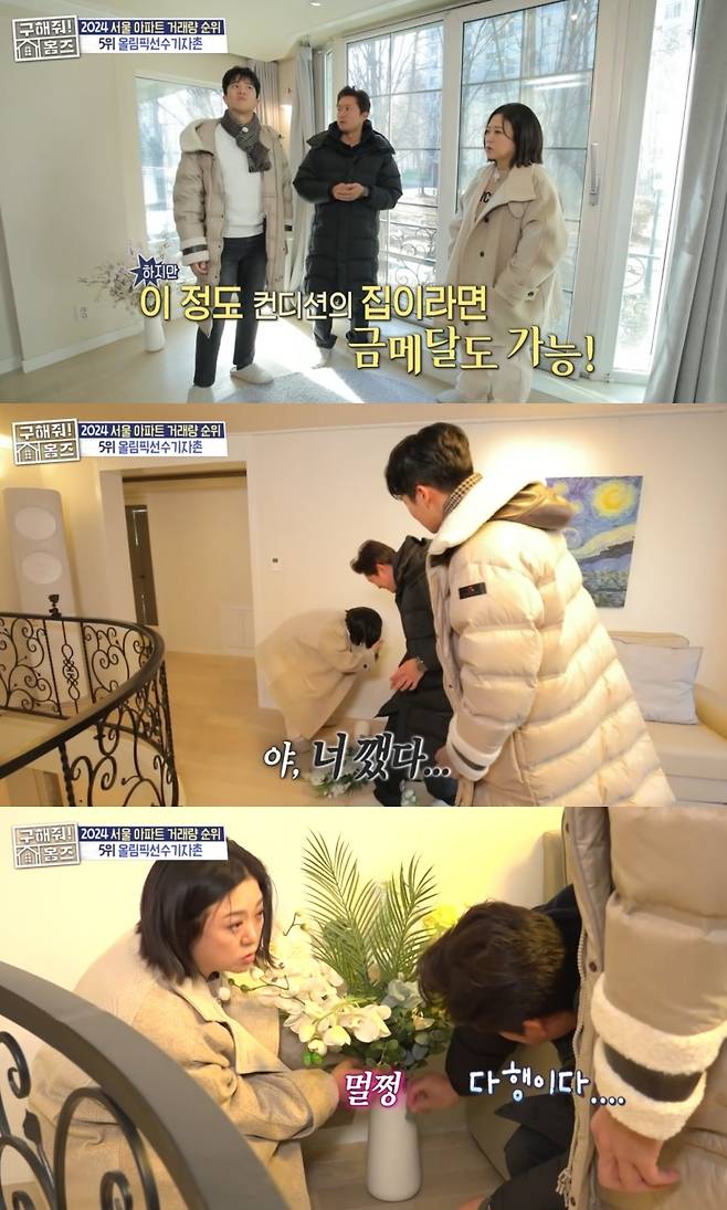 집안을 살피던 중 김대호는 유리로 된 화분을 발로 넘어뜨리는 실수를 저질러 모두의 이목을 집중시켰다.