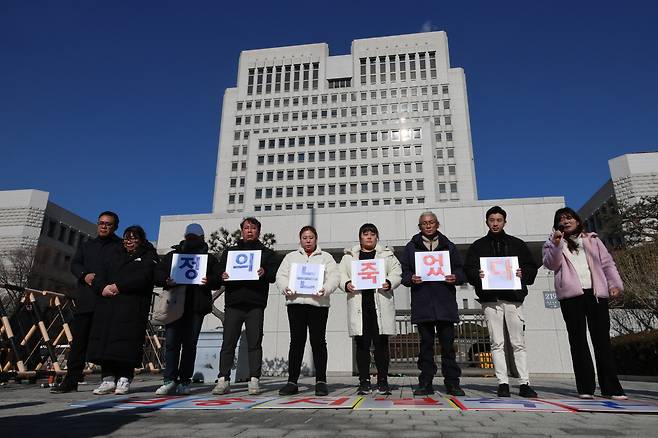 | ▲ 엄중 처벌을 촉구했지만... 인천 미추홀구 전세사기피해 대책위가 23일 서울 서초구 대법원 앞에서 '인천 전세사기 건축왕' 남모씨에 대한 대법원 선고 결과와 관련해 기자회견을 하고 있다. 대법원은 이날 사기 등 혐의로 기소된 남모씨에게 징역 7년을 선고한 원심판결을 확정하고 같은 혐의로 기소된 공인중개사와 중개보조원 등 공범 9명에게도 무죄나 징역형의 집행유예를 선고한 2심 판결을 확정했다. |