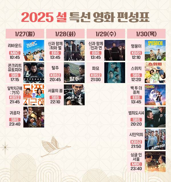 ['25 설-방송] 6일 간의 긴 연휴…안방극장 책임질 설 특선 영화 라인업은?