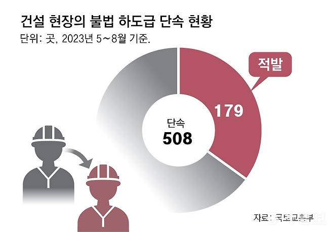 취재 결과 2차, 3차, 4차 업체는 모두 불법 하도급에 해당했다. 대형 건설사가 전문건설업체(1차)에 기둥 설치 공사를 맡겼는데 허락 없이 2차, 3차, 4차까지 일을 떠넘겼기 때문이다. 건설산업기본법상 발주처 동의 없이 재하도급을 하거나, 하청 받은 공사 전체를 재하도급하면 불법이다.