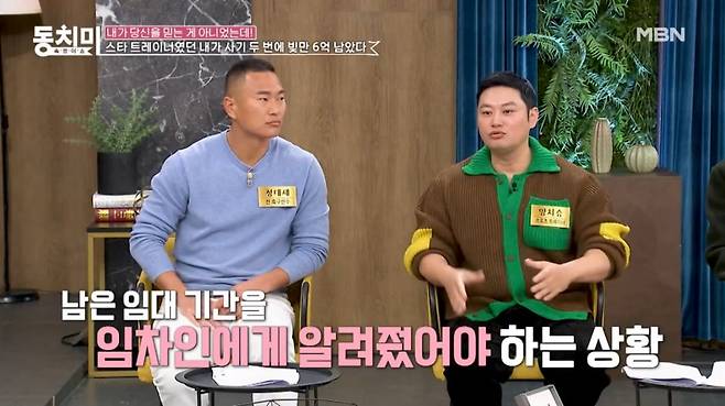 양치승은 “1년 동안 너무 잘됐는데 바로 코로나가 터졌다. 3년 동안 힘들게 버티다가 코로나 풀리고 조금 살아갈만한데 나가라는 거다. 3년 10개월이 남았으면 계약할 때 가르쳐줘야 한다. 아무도 안 가르쳐줬다. 월세 살더라도 3개월 전에는 말해준다. 계약기간이 끝나고 한참 뒤에 오라고 해서 갔더니 나가는 거 아시죠? 그러더라”고 하소연했다.