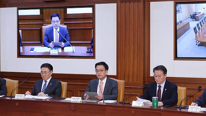 ▲ 최상목 대통령 권한대행 부총리 겸 기획재정부 장관이 22일 정부서울청사에서 국정현안관계장관회의 겸 경제관계장관회의를 하고 있다.