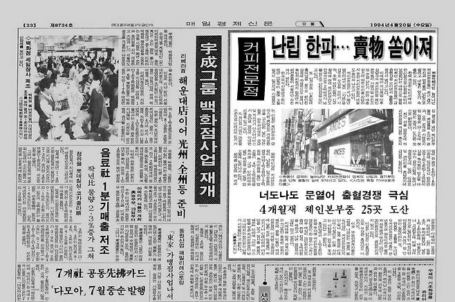 | ▲ 1994년 4월 20일 자 <매일경제> 기사 "커피전문점 난립 한파…매물 쏟아져" |