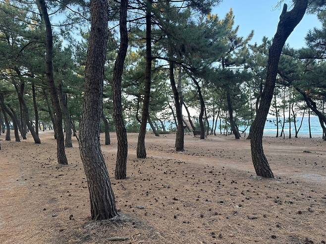 | ▲ 강릉 송정 해안 솔숲의 소나무는 초등학생의 품으로도 너끈히 안을 수 있다. |