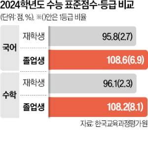 n수생은 대학수학능력시험 성적이 좋기 때문에 정시전형으로 주요 대학에 다수 진학한다. 한국교육과정평가원이 발표한 2024학년도 수능 분석을 살펴보면 국어 과목은 n수생의 6.9%가 1등급을 받았다. 2등급(11.9%)까지 합치면 18.8%에 달한다. 현역은 1등급 2.7%, 2등급 5.2%에 불과했다. 수학도 비슷했다. n수생은 1등급 8.3%, 2등급 12.8%인 데 비해 현역은 1등급, 2등급이 각각 2.3%, 5.2%였다. 입시업계 관계자는 “수능 문제는 문제풀이를 많이 할수록 유리한데, n수생은 내신 준비 없이 수능만 공부하다 보니 절대적인 공부시간이 많을 수밖에 없다”고 말했다.