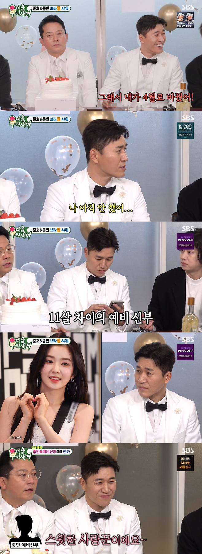 26일 방송된 SBS '미운 우리 새끼'에서는 올해 결혼을 앞둔 예비 신랑 김종민과 김준호의 합동 결혼 축하 파티 현장이 공개됐다.