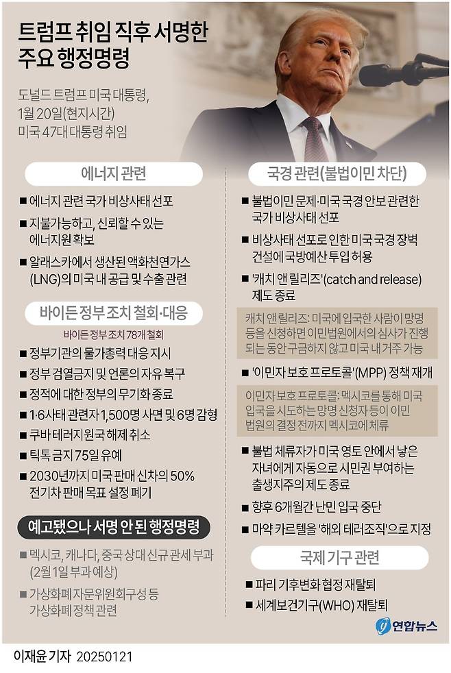 이런 배경에서 트럼프는 취임 당일 ‘행정명령 1호’로 바이든 전 대통령 시절 이뤄진 행정명령 78건 철회를 선택했다. 인종 및 성(性) 차별 금지 조치를 포함한 ‘다양성·형평성·포용성(DEI)’ 정책을 겨냥한 것이다.