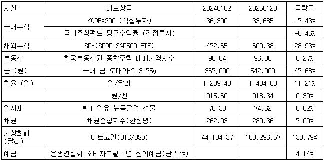 주식과 부동산, 엔화 투자는 별다른 소득이 없거나 오히려 손실을 봤다.