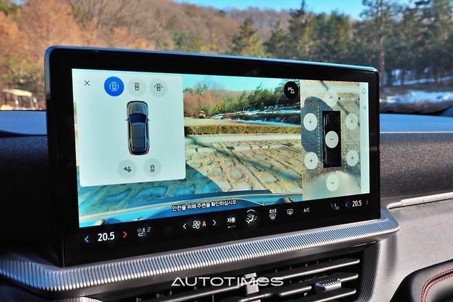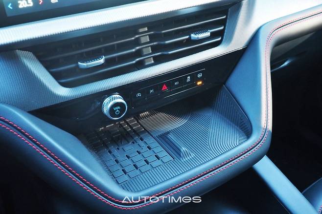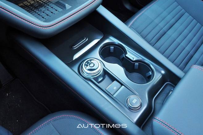센터페시아 중앙에는 바로 사용 가능한 몇 가지 버튼만 위치 할 뿐 최대한 간결하게 다듬고 안쪽으로 깊은 공간을 자랑하는 수납함과 휴대폰 무선충전패드를 마련했다. 쓰임새가 좋으며 이는 센터 터널로 이어진다. 두툼한 벽을 세웠고 깊은 컵홀더와 공간을 갖고 있어 SUV다운 활용성을 키웠다. 반면, 조그셔틀 타입 변속 레버는 기존과 같다.