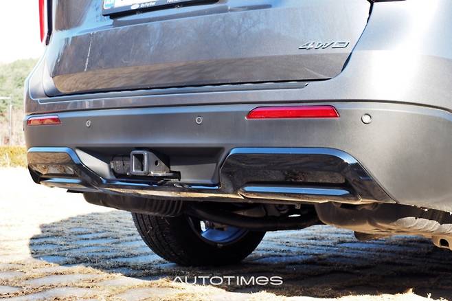 후륜 구동 기반이기 때문에 앞쪽 오버행이 상당히 짧다. 반면 뒤쪽은 길게 빠져 있어 대형 SUV 다운 맛을 잘 전달한다. 균형감이 좋고 덩치가 상당해 감성을 느끼기에 충분하다. 뒤는 테일램프 변화가 인상적이다. 트렁크 가운데 쪽으로 길게 제동등을 표시해 차가 더 넓어 보이는 효과를 준다. 또 램프와 램프 사이를 길게 유광 블랙으로 이어 넣었다.