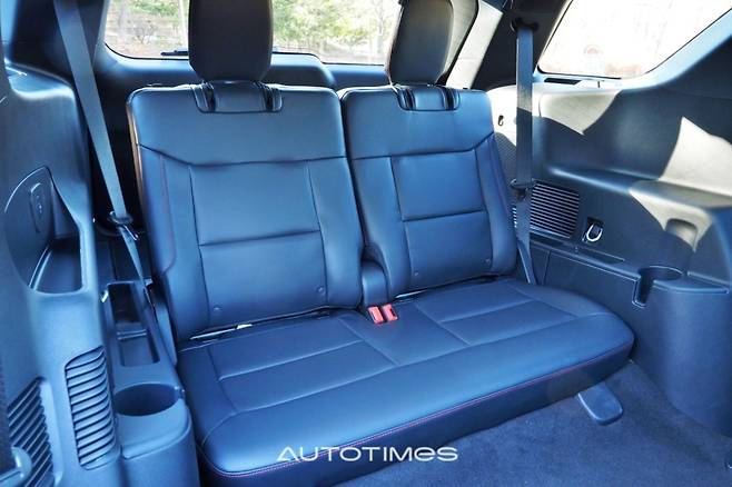 ST-라인은 6인승이 기본이며 2열 독립식 캡틴 시트가 장착돼 있다. 미국 차답게 매우 커다란 면적을 보여준다. 또 슬라이딩과 리클라이닝 각도가 절묘해 여유로운 이동이 가능하다. 중앙에는 전용 공조장치와 열선시트, 충전 단자, 컵홀더가 있고 도어 패널 안쪽에는 여분의 컵홀더가 각각 두 개씩 추가로 마련돼 있다. 송풍구는 천장에 있으며 햇빛 가리개도 제공해 부족함이 없다.