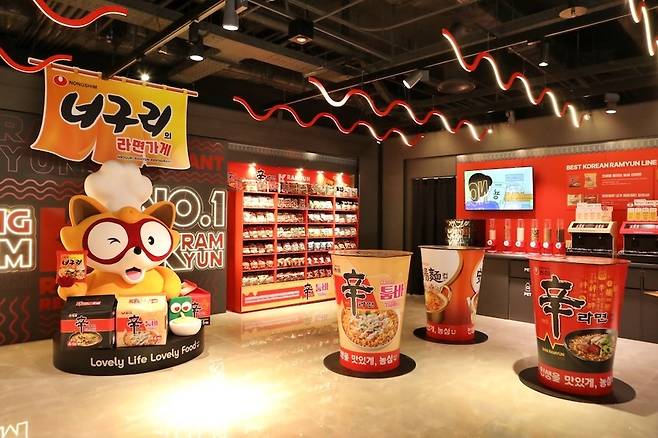 농심은 지난해 명동에 2개의 K라면 체험매장을 마련했습니다. 지난해 7월 호텔 체인 스카이파크 그룹과 협업해 '너구리의 라면가게' 명동점을 오픈했고, 10월에는 명동 코리아마트와 협업해 'K라면 슈퍼마켓'을 오픈했습니다.