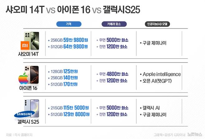 다만 가격 외의 기능을 고려하면 아직은 '글쎄'다. 지금 스마트폰 시장은 그야말로 'AI 전쟁'이다. 최근 삼성은 언팩 행사에서 구글 제미나이와 자체 갤럭시 AI가 결합된 통합형 AI 플랫폼 'One UI 7'을 입은 갤럭시 S25 시리즈를 출시했다. 애플도 자체 AI인 '애플 인텔리전스' 한국어 AI 기능을 오는 4월에 공개할 것으로 전망된다. 하지만 샤오미는 아직 AI 전쟁 '참전' 전인 상황이다.