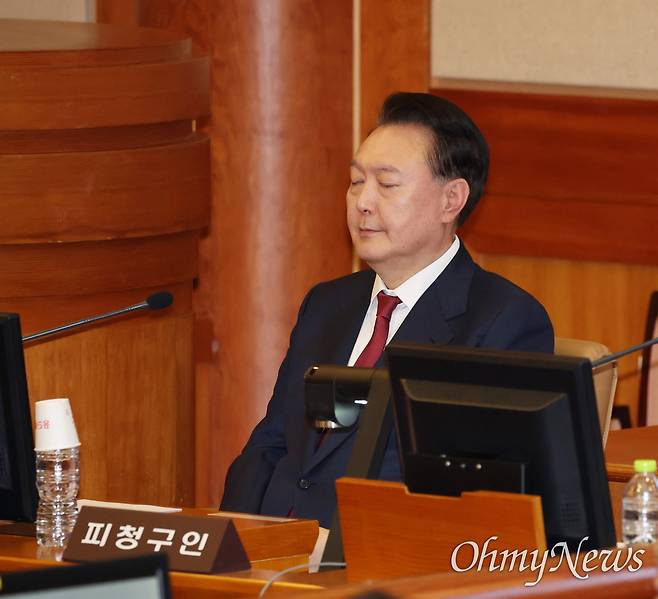 | ▲ 눈 감은 윤석열 대통령 윤석열 대통령이 23일 오후 서울 종로구 헌법재판소 대심판정에서 열린 탄핵심판 4차 변론기일에 출석해 눈을 감고 있다. |