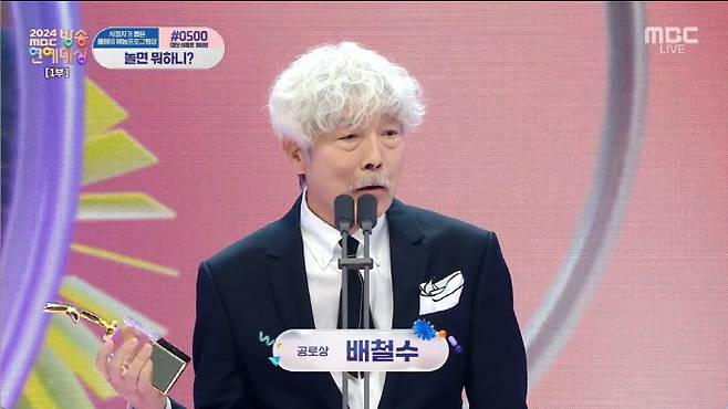 공로상을 받은 배철수는 "MBC에서 공로상을 주신다 해서 제가 무슨 공을 세운 게 있나 하고 제 방송연예 생활을 돌이켜봤다"라 했다.
