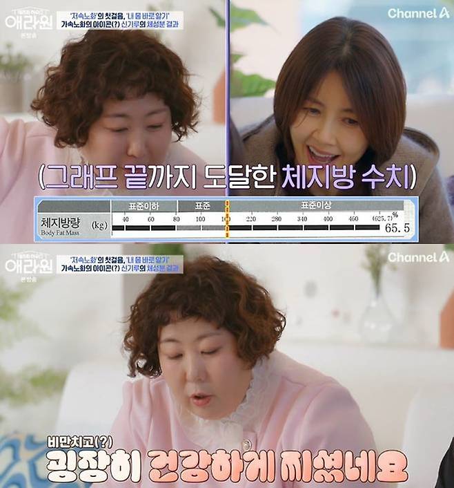 이후 신기루의 체성분 측정이 이뤄졌다. 신기루의 체지방량은 무려 65.5kg이었다. 이에 신기루는 "에러가 난 것 같다"거 의심했지만, 신애라는 "에러는 아닐 것"이라고 돌직구를 날렸다.