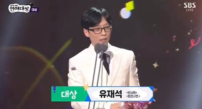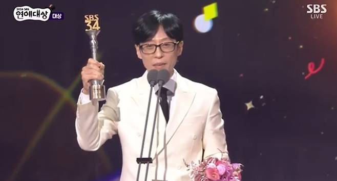 유재석이 '2024 SBS 연예대상' 대상을 수상하며 국민MC 자리를 입증했다.