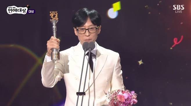 유재석은 29일 생방송으로 진행된 '2024 SBS 연예대상'에서 대상을 수상하는 영광을 안았다. 지난해 4월 23일 첫 방송된 '틈만 나면,'을 시즌제 예능 프로그램으로 안착시켰고, 15주년을 맞는 국내 최장수 버라이어티 '런닝맨'을 성공적으로 이끌었다. 누구나 인정하는 이변 없는 대상, 통산 20번째 대상 트로피였다.